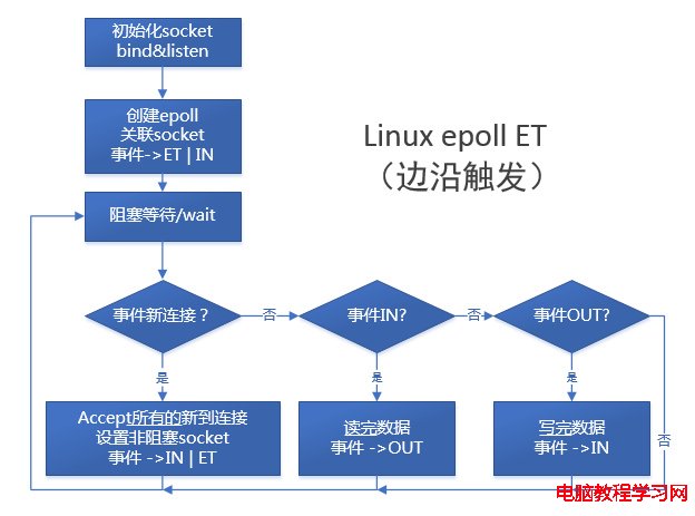 而邊沿觸發,在大並發情況下,更加高效,因為通知只發一次,但只支持非阻塞的socket I/O。