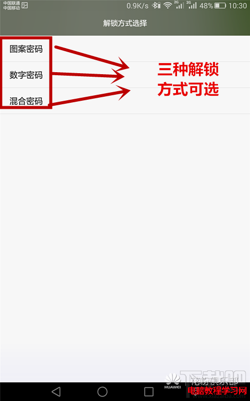 有三種解鎖方式供選擇,我們選擇數字密碼