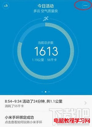 1、手機上打開小米手環,點擊右上角的“更多”選項圖標,如圖所示