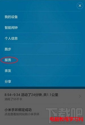2、接著請在選項列表中點擊“服務”選項,如圖所示