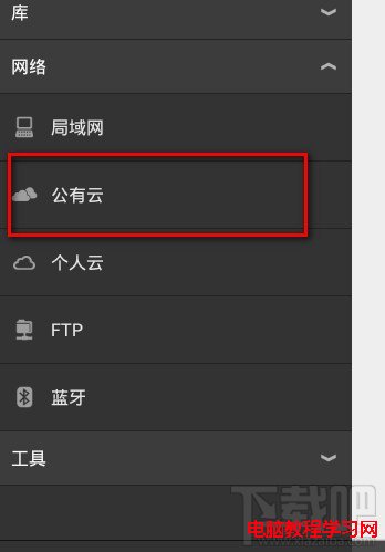 1:在打開ES文件浏覽器,在左邊點擊“網絡”,看到一個公有雲,這裡就是。