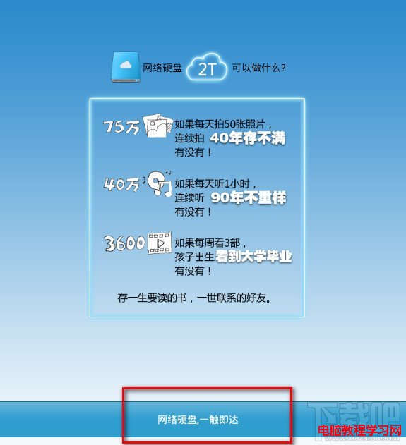2:領取兩T空間需要您登錄手機版的百度雲客戶端才能領取,直接選擇網絡硬盤一觸即達。