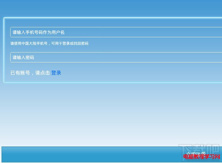 3:點擊進入後,最下就是注冊新的百度雲好。我這裡有了,就點“登陸”就行,就跳到登陸頁面,你自己填上的百度賬號跟密碼就行了。點擊登陸