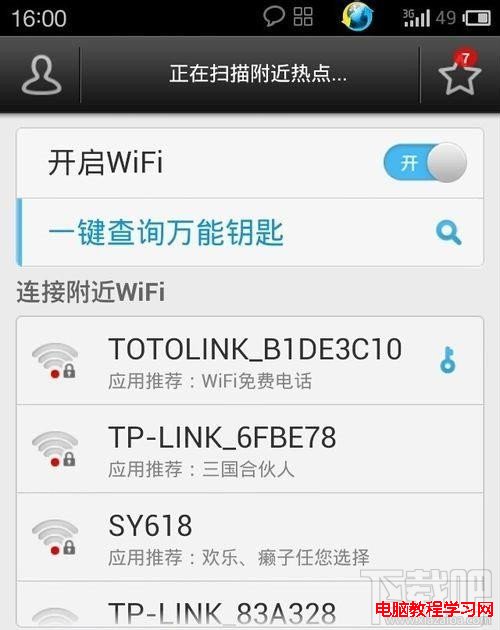 不少朋友都用過wifi萬能鑰匙,一般都是用它來獲得免費wifi的。wifi萬能鑰匙手機版是一款自動獲取周邊免費Wi-Fi熱點信息並建立連接的android手機必備工具。但是獲得之後,密碼我們是不知道的,那怎麼樣去查看破解的密碼的密碼呢?現在由小編來教大家,希望對大家有幫助。