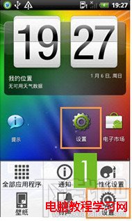 點擊手機 Menu鍵(菜單鍵),在彈出的菜單中選擇 設置(Setting), 或在應用程序中找到設置 程序點擊進入