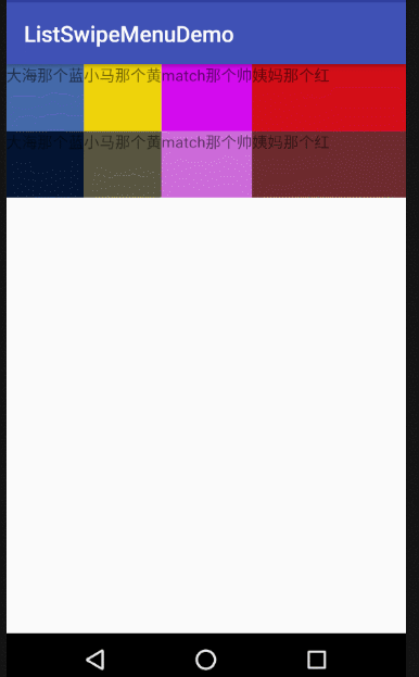 Demo裡,我的ContentItem是一個TextView,那麼我就在其外嵌套本控件,並且以側滑菜單出現的順序,依次排列菜單控件即可。