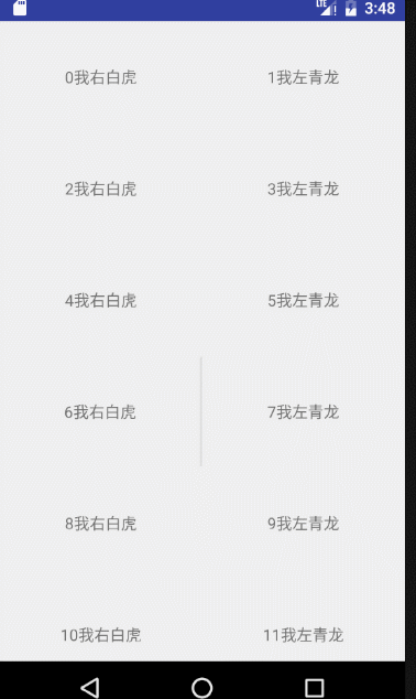 GridLayoutManager (和上圖的代碼比,只需修改RecyclerView的LayoutManager。):