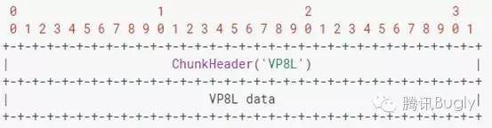 Chunk Header:VP8塊首部,定義了VP8比特流數據的大小,以及該幀VP8數據的長寬等信息。