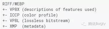 無損WebP包含ICC配置文件和XMP元數據形如: