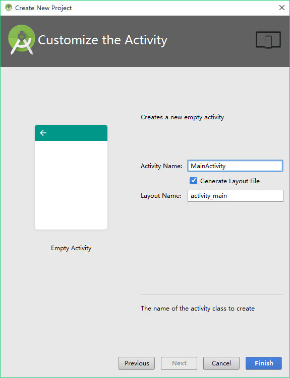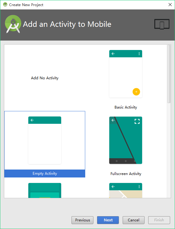 為了簡單起見,這裡選擇“Empty Activity”. 點擊Next.