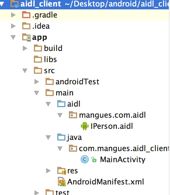 IPerson.aidl只是一個接口文件,用來aidl交互的,建立好之後gradle一下就行了,studio會自動創建需要的文件,具體什麼文件你不用管,我們用不到,你在代碼裡可以看到