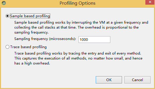 整體監聽:跟蹤每個方法執行的全部過程,這種方式資源消耗比較大 抽樣監聽:按照指定的頻率來進行抽樣調查,這種方式需要執行較長時間來獲取較精准的樣本數據