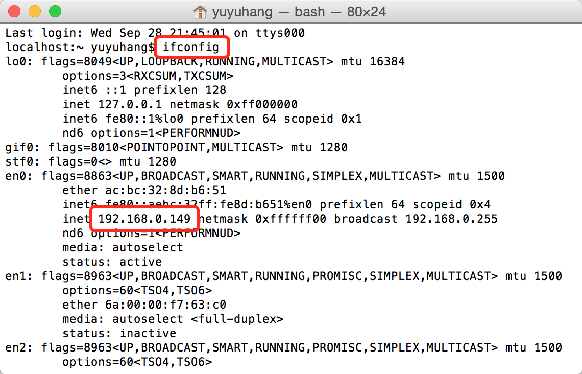 首先,通過ipconfig查看主機ip地址(mac或linux下使用ifconfig)。