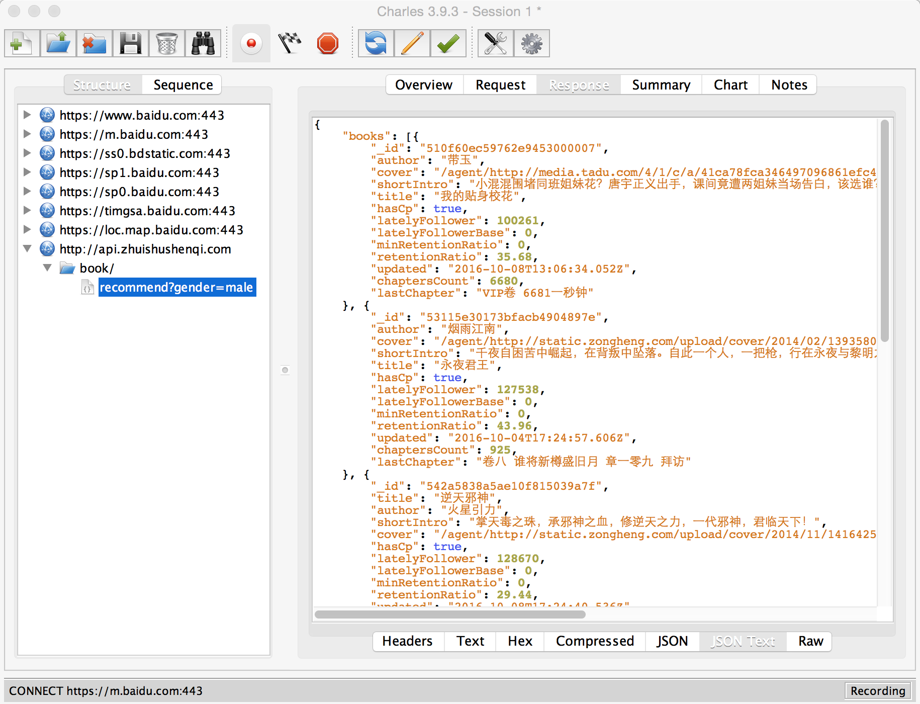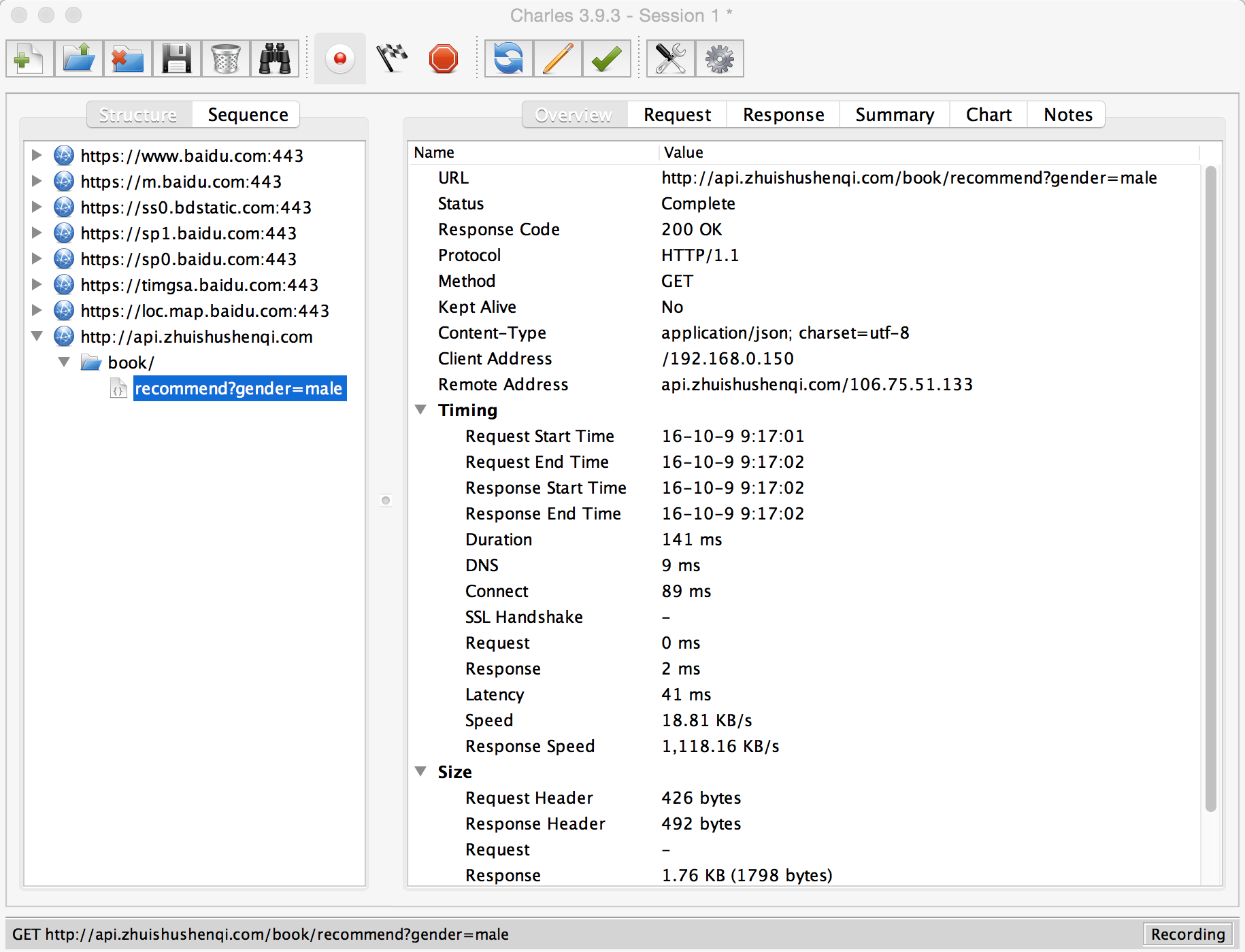 在實現的過程中,你可能會發現有部分url直接在浏覽器打開,獲取不到數據,但是在Charles卻可以。那麼就很有可能是Header的問題了,那麼就需要去嘗試把Header信息加入我們的請求裡面了。這部分就不細說了,具體可以參考後面的項目。