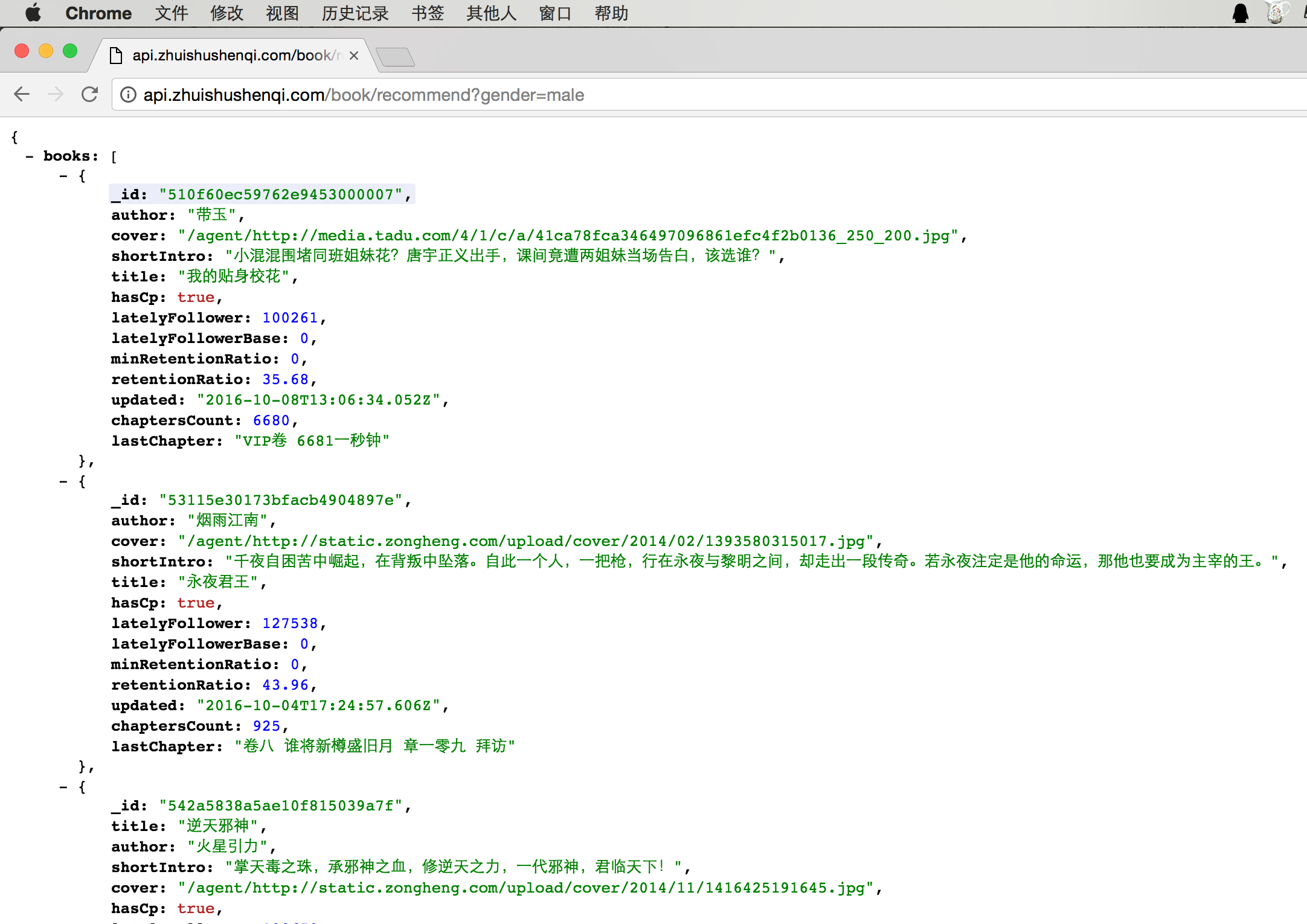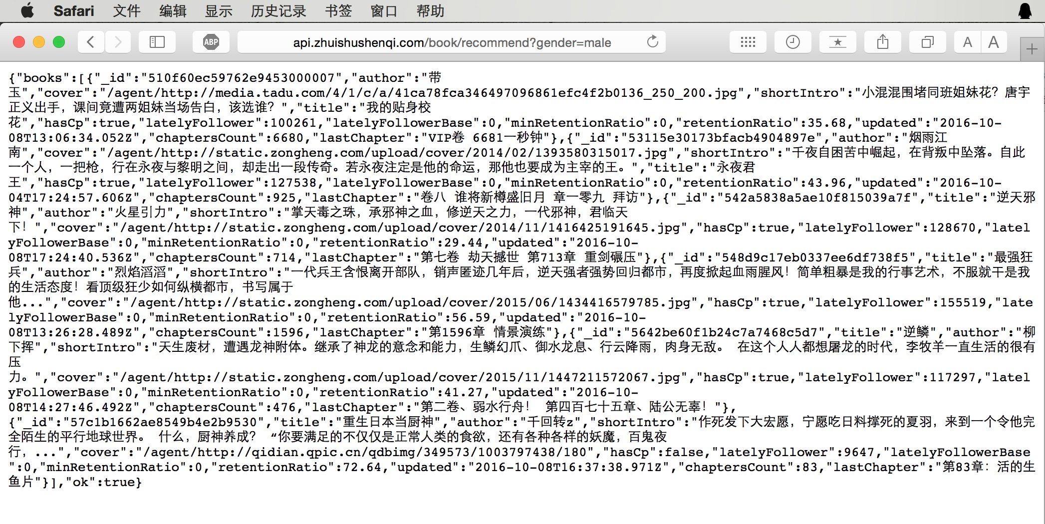 這樣,就完成了一次HTTP請求的攔截。同樣,我們拷貝該URL在浏覽器打開,同樣可以得到這些json數據。如圖