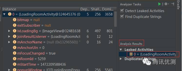 如圖,原來洩漏發生是LoadingRoomActivity的鍋!