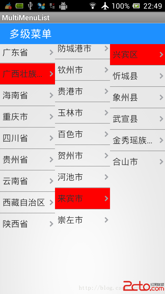 android listview級聯三菜單選擇地區,本地數據庫sqlite級聯地區,item選中不變色