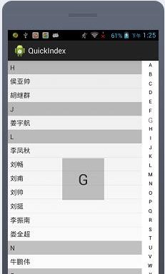 最近需要實現一個手機通訊錄的快速索引功能。根據姓名首字母快速索引功能。下面是一個手機聯系人快速索引的效果,總體來說代碼不算難,拼音轉換的地方略有復雜。下面上源碼:源碼中有
