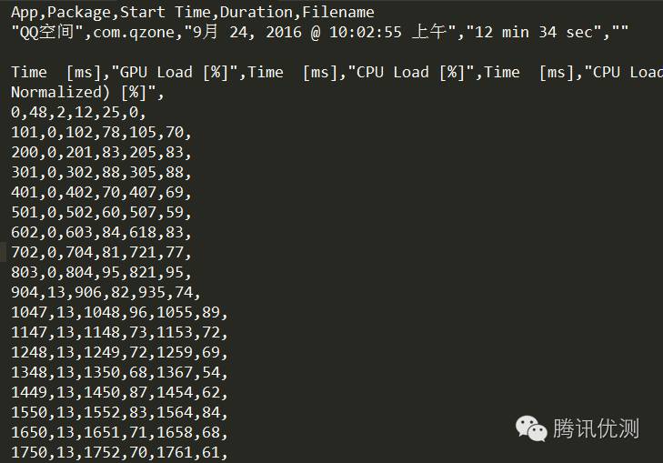 直播結束後,回到Trepn Profiler並選擇“Stop Profiling”,會提示是否保存測試結果,選擇“Save as .csv”,就可以保存測試過程中每次采樣獲得的原始數據。從手機中將csv格式的原始數據撈出來,可以用excel打開或者文本編輯器打開,可以根據後續需要自行選擇數據處理方式。