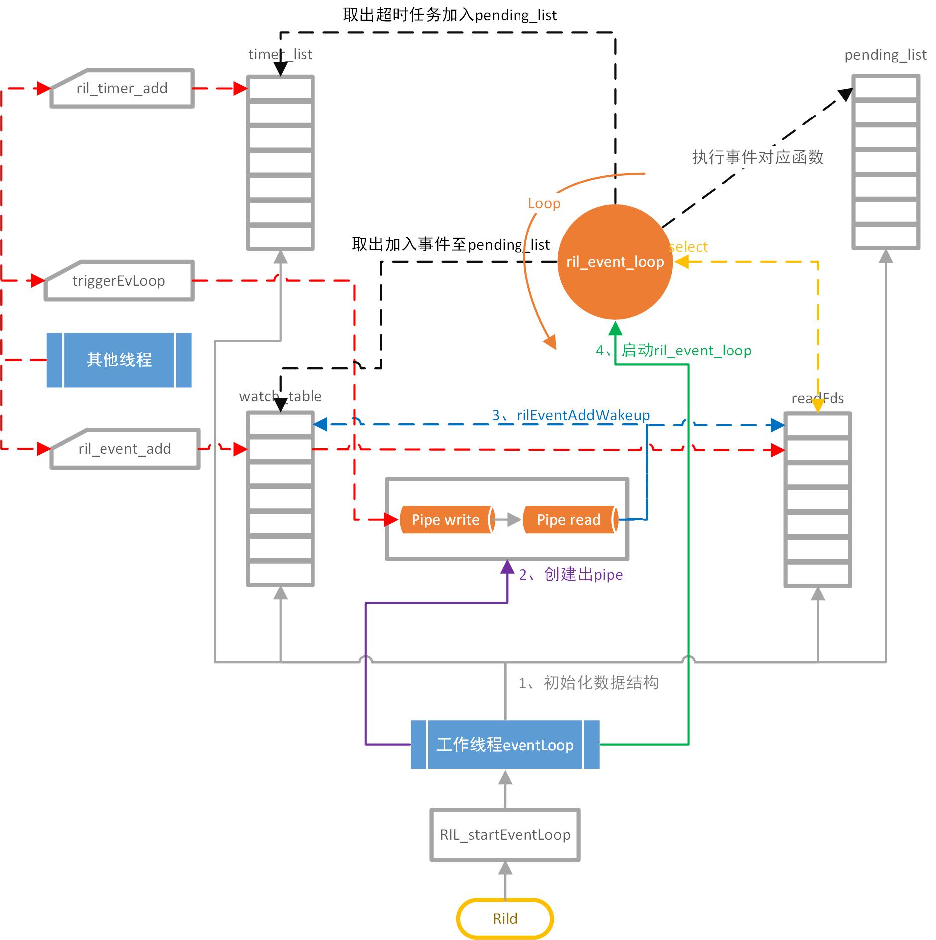 根據Rild的main函數,我們可以看出主要就進行了三件事:啟動Event Loop、調用RIL_Init函數和注冊庫函數。