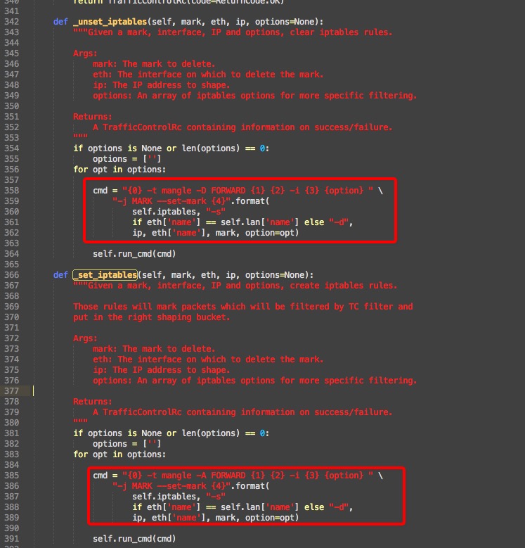 分析流控原理,主要是通過在traffic control服務器的bridge上的FORWARD chain上設置iptables規則,然後在eth0.54和eth1.54上使用tc的HTB策略進行發包限速。(facebook atc 內核裡面默認配置的),順籐摸瓜,發現了以下幾個問題。