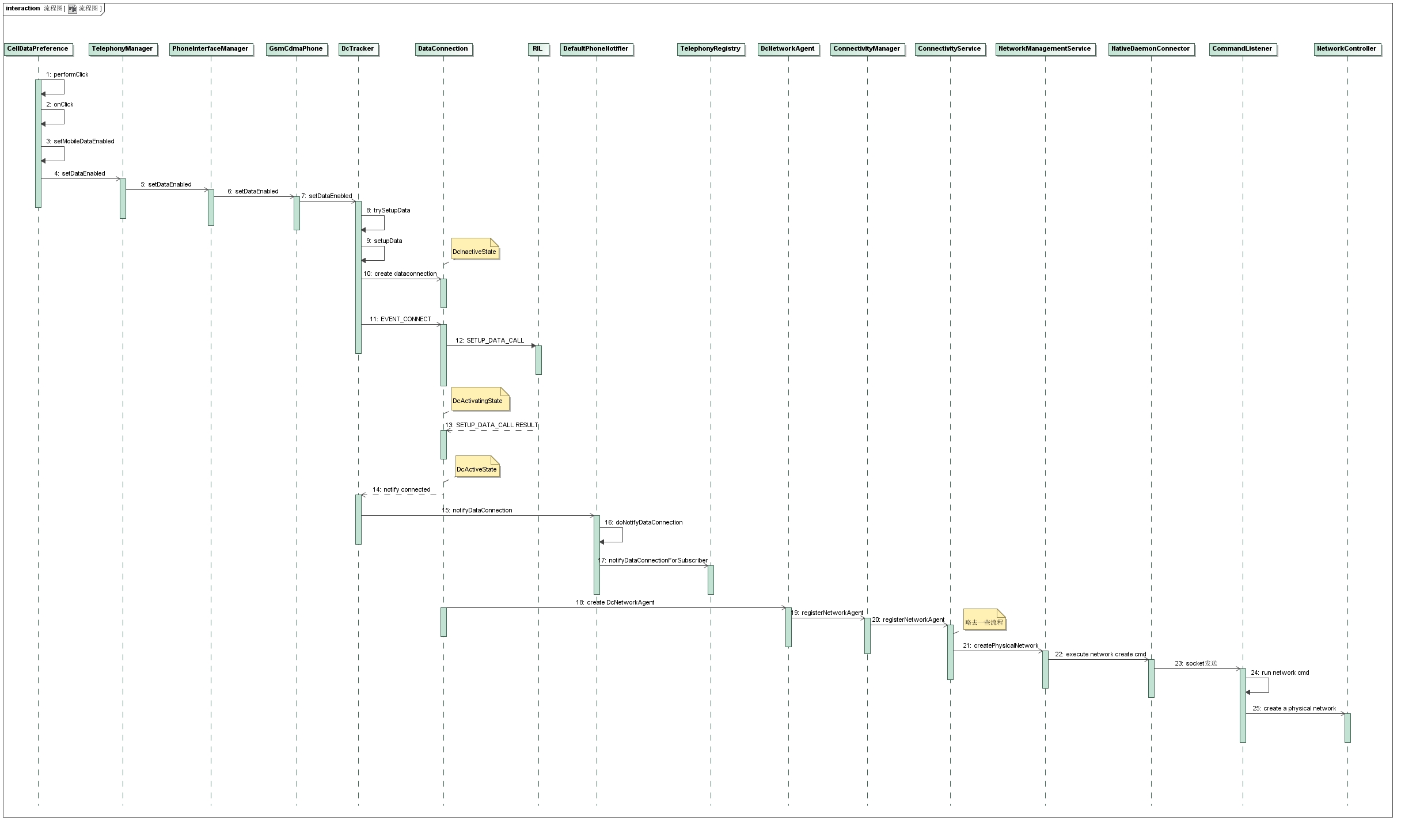 前面我們已經分析了android在進行數據業務撥號前,進行相關准備工作的流程,現在我們可以分析一下整個數據業務長連接撥號在框架部分的流程。