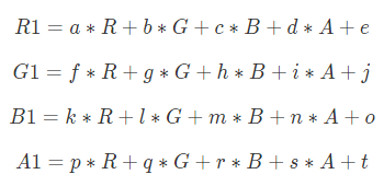使用色彩矩陣改變顏色值一般有三種方法: