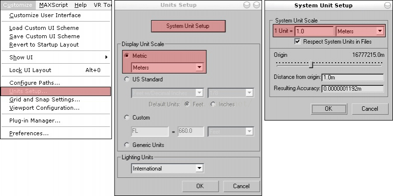 本文提到的所有數字模型制作,全部是用3D MAX建立模型,即使是不同的驅動引擎,對模型的要求基本是相同的。當一個VR模型制作完成時,它所包含的基本內容包括場景尺寸、單位,