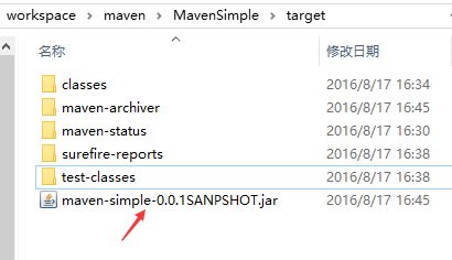 我們在運行mvn package命令生成jar包,build success之後再回到target目錄如下