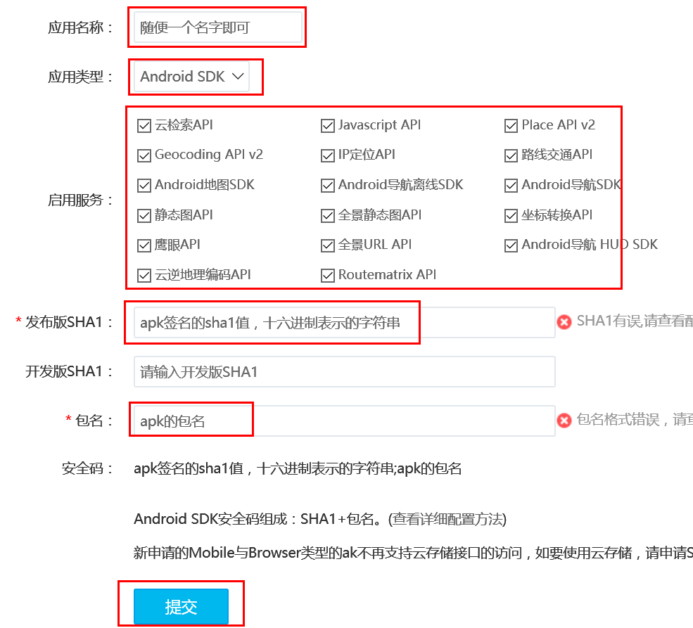 這裡需要注意的是,一個應用想使用這個key,需要簽名、包名、key值相對應。地圖sdk是在插件中接入的,所以key值需要配置在插件裡,但是百度地圖sdk讀取包名時,會讀取宿主的,所以在創建key時,直接使用宿主包名,但是將生成的key配置到插件。如果為了測試時插件獨立運行,可以單獨為插件生成一套相應key,但是加入宿主時,必須換成宿主key
