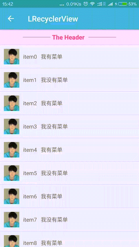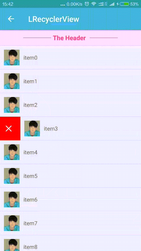 經過再三思考,同時也為了大家使用方便,LRecyclerView集成了SwipeMenu系列功能,包括Item側滑菜單、長按拖拽Item,滑動刪除Item等功能。