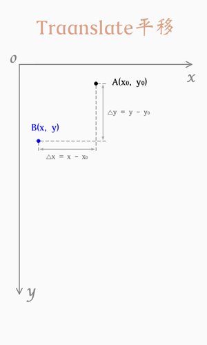 我們所用到的變換均屬於仿射變換,仿射變換是 線性變換(縮放,旋轉,錯切) 和 平移變換(平移) 的復合,由於這些概念對於我們作用並不大,此處不過多介紹,有興趣可自行了解。