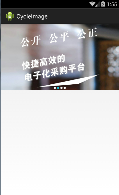 (項目中需要實現圖片輪番效果,就查資料著重學習,本地圖片實現)原理就是利用定時任務器定時切換ViewPager的頁面,根據圖片個數動態生成下端的圓點。效果圖: 1、獲取本