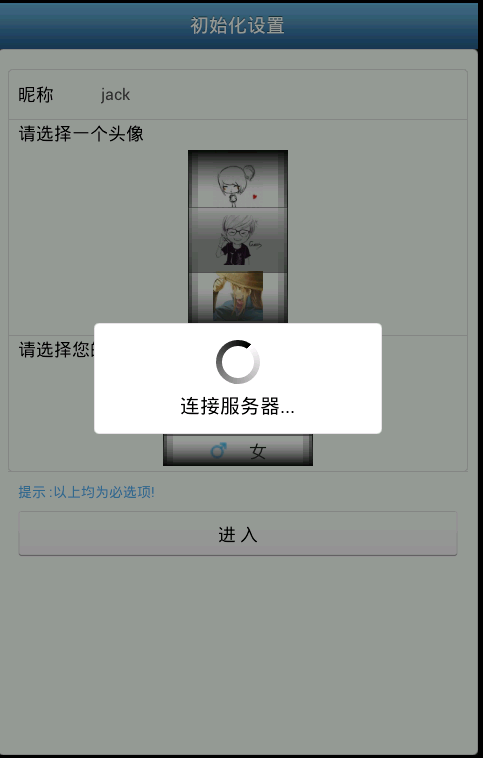 嗯,其實用了一個比較巧妙的方式;在用戶首次安裝軟件的時候,會要求用戶填寫注冊信息,也就是昵稱等;當用戶填寫完畢時,點擊登錄的時候: