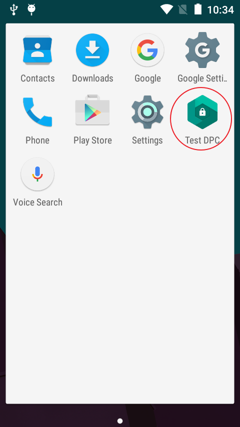 只有白名單配置的App會顯示在桌面,Test DPC就是策略管理的App, DPC通過 DevicePolicyManager的API來配置和管理賬戶。