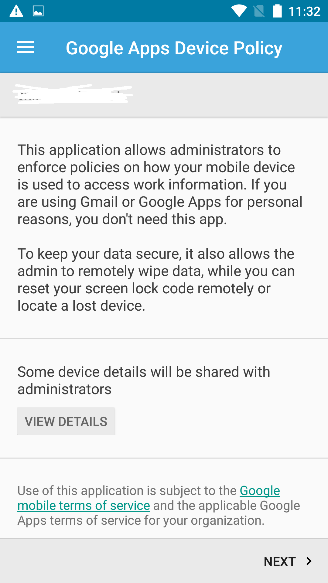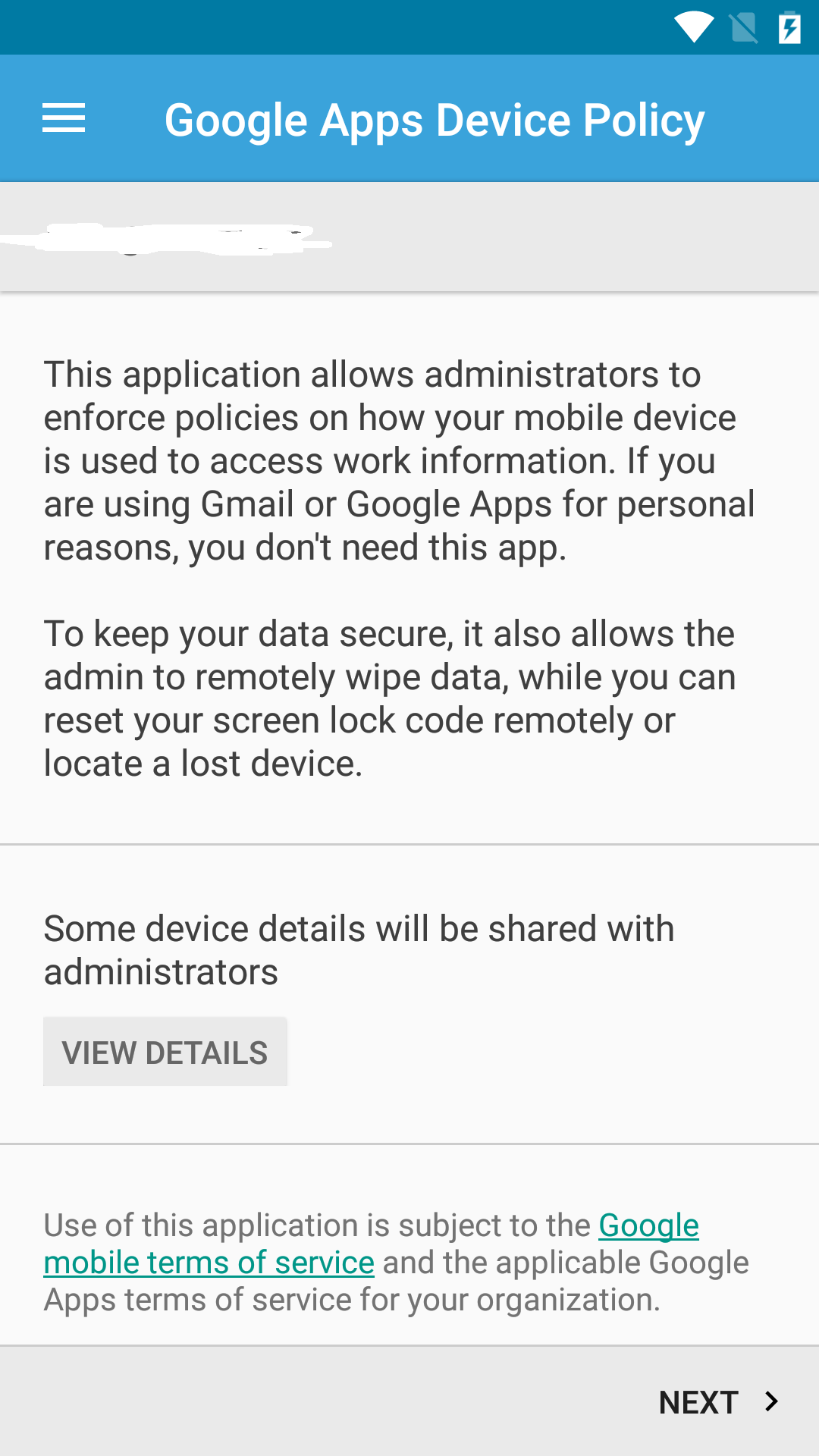 這一步需要讀取遠端EMM的配置信息,需要使能了Device Owner,這裡才會出現下圖的信息。