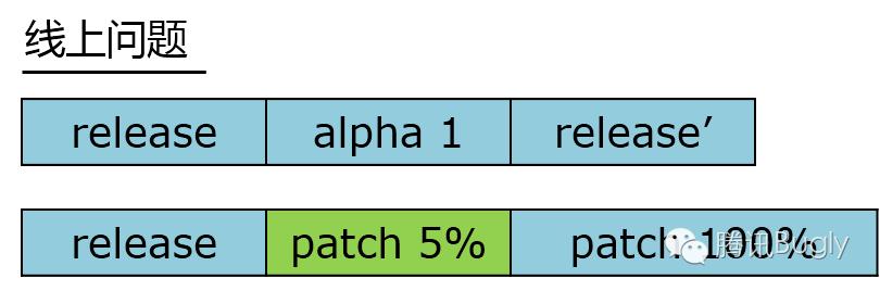 若發布版本出現問題或緊急漏洞,傳統方式需要單獨灰度驗證修改,然後重新發布新的版本。利用補丁技術,我們只需要先上線小部分用戶驗證修改的效果,最後再全量上線即可。但是此種發布對線上用戶影響較大, 我們需要謹慎而為。本著對用戶負責的態度,發布補丁等同於發布版本,它也應該嚴格執行完整的測試與上線流程。