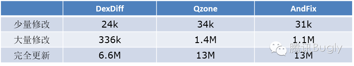 若不care性能損耗與補丁包大小,QZone方案是最簡單且成功率最高的方案(沒有單獨的合成過程)。相對Tinker來說,它的占用Rom體積也更小。另一方面,QZone與Tinker的成功率大約相差3%左右。