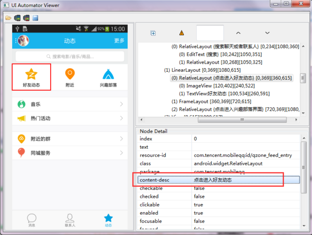 UiObject obj_1 = new UiObject(new UiSelector().description("點擊進入好友動態"));