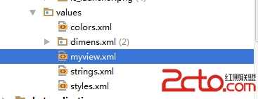 自定義組件的屬性步驟如下【1】在Values資源文件下新建myview.xml 自定義兩個屬性背景圖、畫筆筆觸大小;【2】在