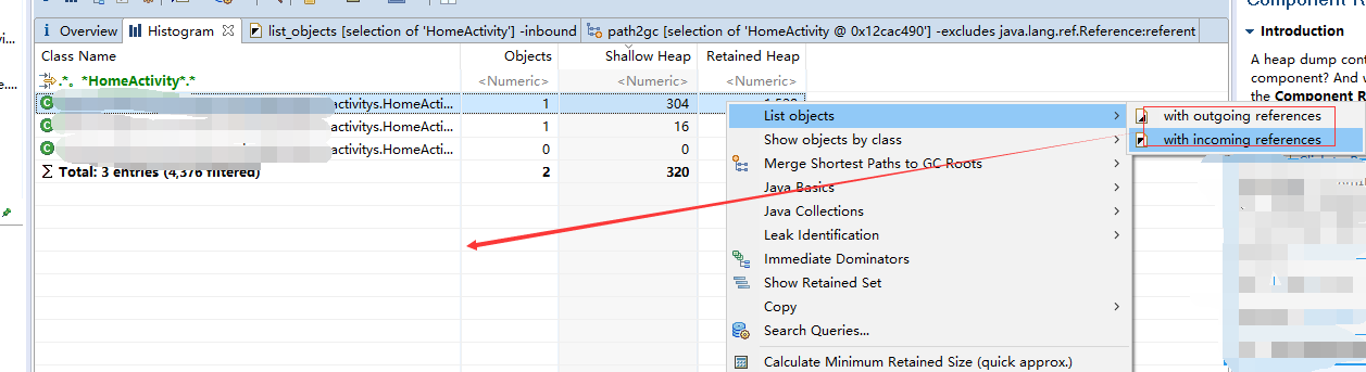 再通過Path to GC Root(被JVM持有的對象,如當前運行的線程對象,被systemclass loader加載的對象被稱為GC Roots, 從一個對象到GC Roots的引用鏈被稱為Path to GC Roots, 通過分析Path to GC Roots可以找出JAVA的內存洩露問題,當程序不在訪問該對象時仍存在到該對象的引用路徑。 )跟蹤變量沒被回收的具體位置