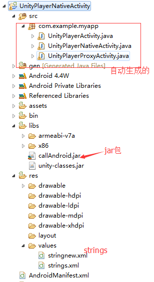我們把Android SDK打成jar+res(就一個stringnew.xml)的形式發布,加入到Unity導出的工程中。