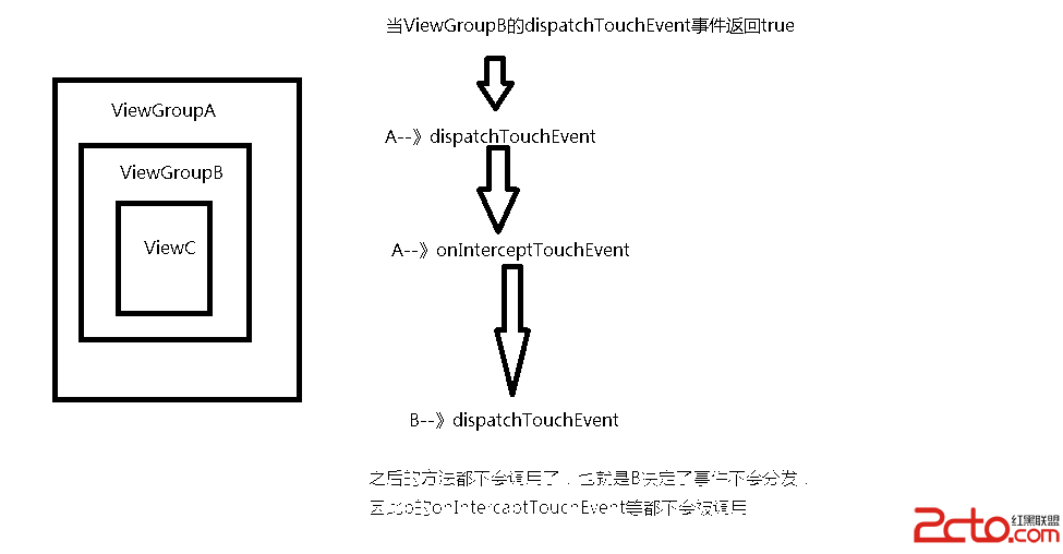 如果讓我們的viewGroupB處理事件呢?我們也可以推測出來了