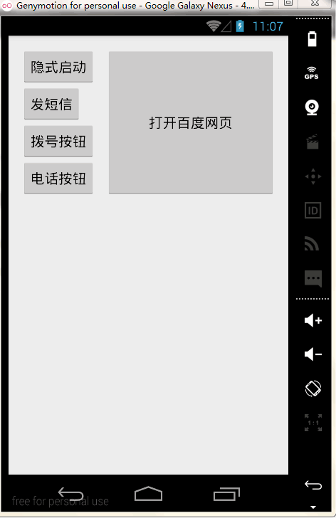 requestWindowFeature(Window.FEATURE_NO_TITLE)設置後,運行虛擬機過程中有延遲,先顯示後不顯示,以後不知道是否有新用法。 Toast消息提醒,感覺挺不錯的,makeText方法的第一個參數為context,從api上來看就是application和activity,第三個參數為顯示周期,長或者短,但不知道默認的長短是多少時間,看代碼,好像是可以指定。