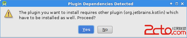 由於這個擴展插件依賴於Kotlin插件,因此會彈出一個對話框提示我們同時去下載它,點擊Yes按鈕開始插件的下載: