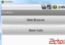 使用意圖調用內置應用程序 1、創建一個新的Android項目並命名為Intents,在main.xml文件中添加兩個Button: 2、
