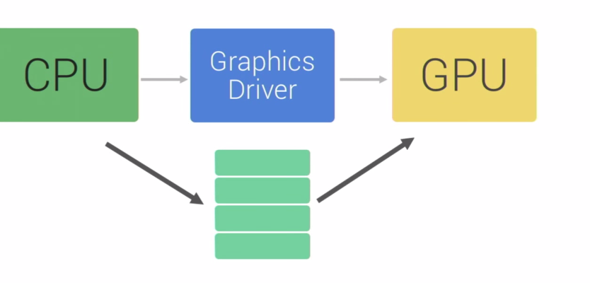 現代的圖形API不允許CPU直接與GPU通信,而是通過中間的一個圖形驅動層(Graphics Driver)來連接這兩部分。