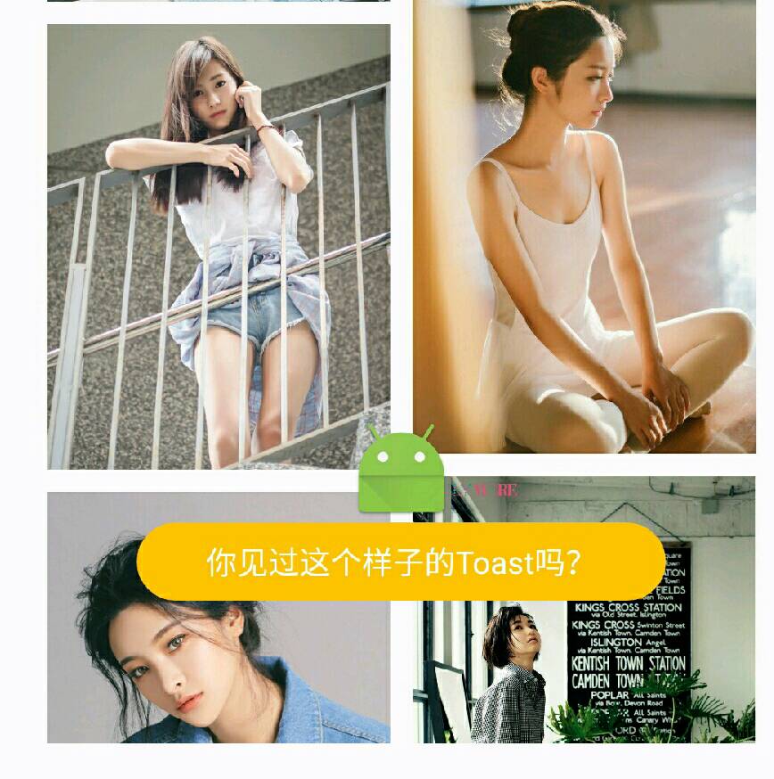 View view = LayoutInflater.from(MainActivity.this).inflate(R.layout.image,null); new ToastUtil(MainActivity.this,view,Toast.LENGTH_SHORT).show();