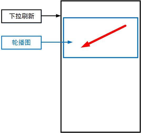 最近在開發中遇到了這樣一個問題,在下拉刷新組件中包含了一個輪播圖組件,當左右滑動的圖片時很容易觸發下拉刷新,如下圖所示:如圖中紅色箭頭所示方向切換輪播圖,很容易觸發下拉刷