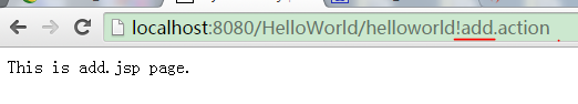 每個Action的結果文件自己添加即可,完成之後,就可以打開浏覽器,並輸入:http://localhost:8080/HelloWorld/addAction.action 就可以看到HelloWorldAction類執行add()方法了。